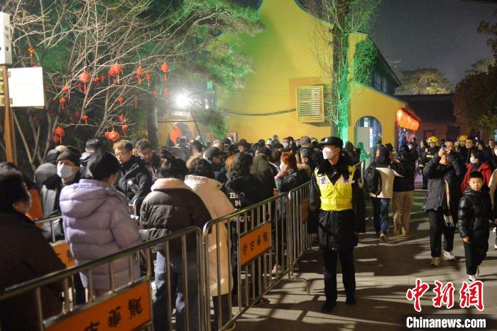 2月9日23時(shí)30分許,龍華古寺內(nèi)外人流如織。市民群眾在現(xiàn)場(chǎng)民警指揮下,有序通過龍華西路、天鑰橋路上的“蓄水池”排隊(duì)并驗(yàn)碼入寺。由于今年龍華古寺采取實(shí)名預(yù)約免票入場(chǎng),客流量將高于去年。據(jù)悉,2月9日夜間的客流量已達(dá)1萬余人次,2月10日全天客流預(yù)計(jì)將達(dá)到10萬人次。
