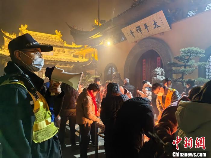 “太平禪寺零點(diǎn)前后達(dá)到瞬時(shí)人流高峰,人流量接近往年峰值人數(shù)的兩倍?!鄙虾J泄簿謱毶椒志诸櫞迮沙鏊L(zhǎng)何相俊說。位于上海市寶山區(qū)太平禪寺的龍年撞鐘、燒頭香等活動(dòng),吸引了大量市民前來進(jìn)香。為應(yīng)對(duì)2月9日晚至2月10日凌晨的短時(shí)大客流,顧村派出所在寺廟入口處增設(shè)了蛇形緩沖通道,預(yù)計(jì)可同時(shí)容納500人以上有序排隊(duì)入寺。