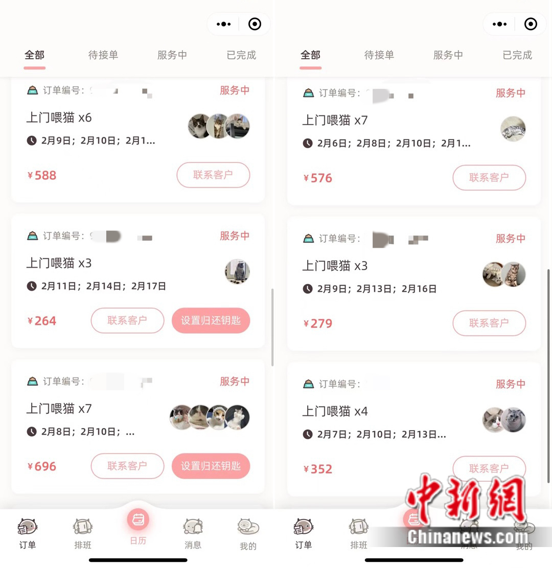 早在兩個(gè)月前,池女士就陸續(xù)接到了預(yù)約春節(jié)上門喂養(yǎng)的單子,到了1月底,由于訂單眾多,她不得不封單?!鞍创螖?shù)的話有超過(guò)150單了,好幾天都是一天20單?!卑垂?jié)假日平均80/次的價(jià)格來(lái)算,這個(gè)春節(jié)她將收入過(guò)萬(wàn)。