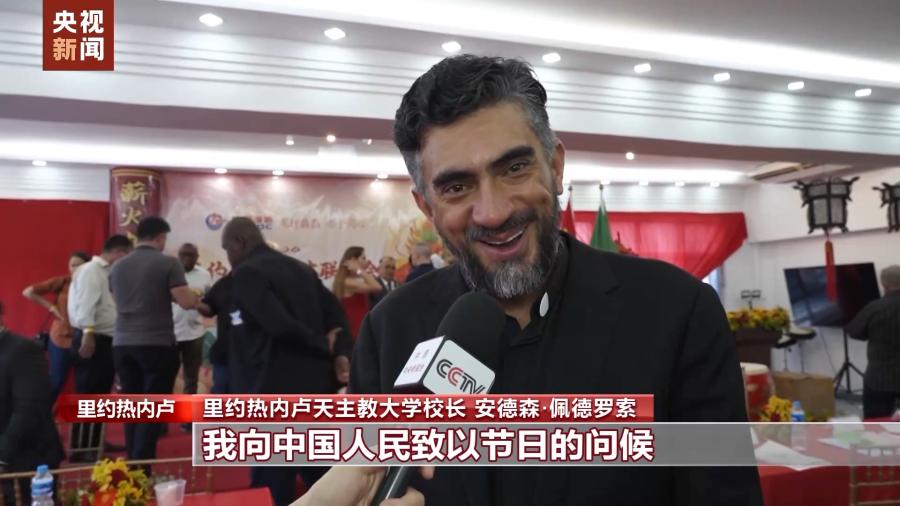 里約熱內(nèi)盧天主教大學(xué)校長 安德森·佩德羅索:我們與中國的合作已經(jīng)有十二年了,孔子學(xué)院就建在我們大學(xué)。我非常高興能參加今天的活動(dòng),我向中國人民致以節(jié)日的問候,希望我們今后加強(qiáng)合作。新春快樂,龍年大吉。