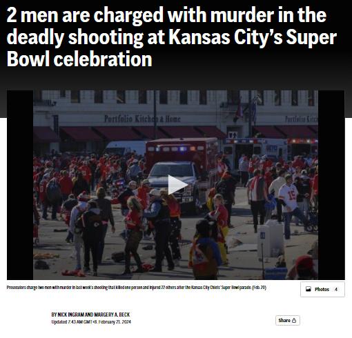 此前報(bào)道,美國密蘇里州堪薩斯城14日在舉行美國職業(yè)橄欖球大聯(lián)盟“超級碗”勝利游行時(shí)發(fā)生槍擊事件,造成至少1人死亡、20余人受傷。