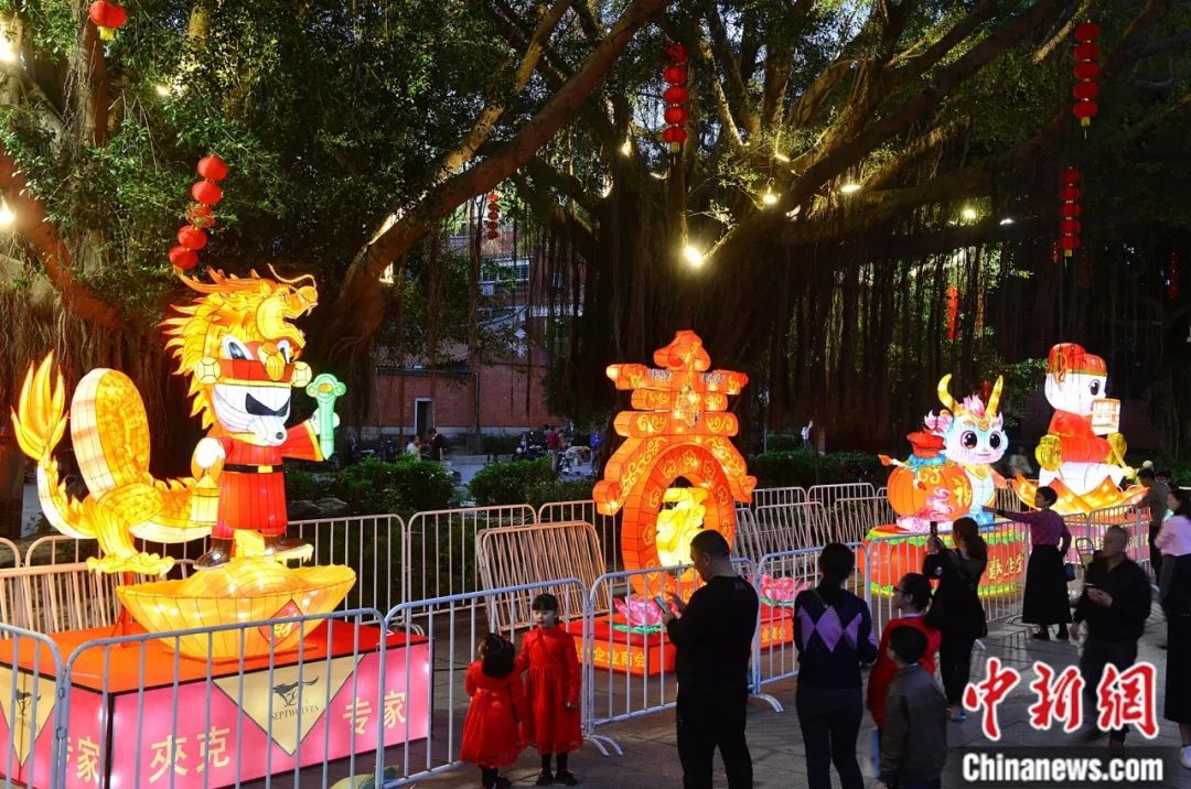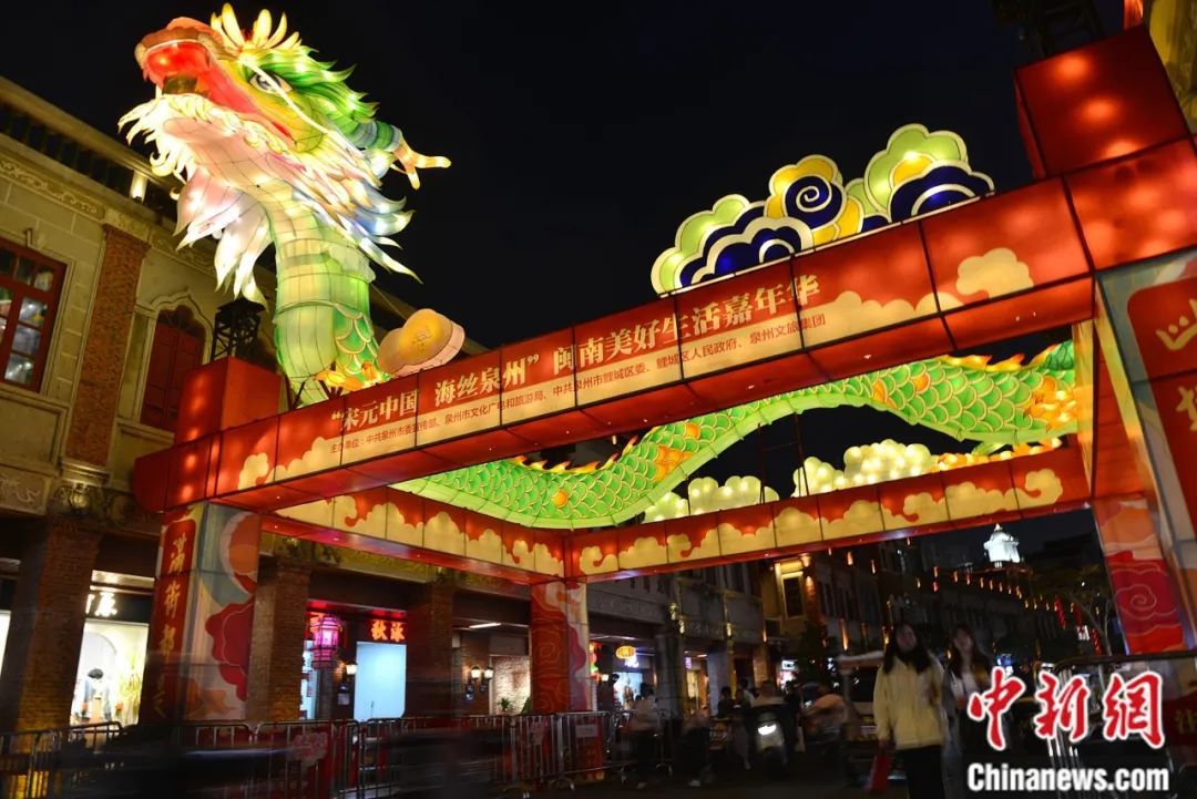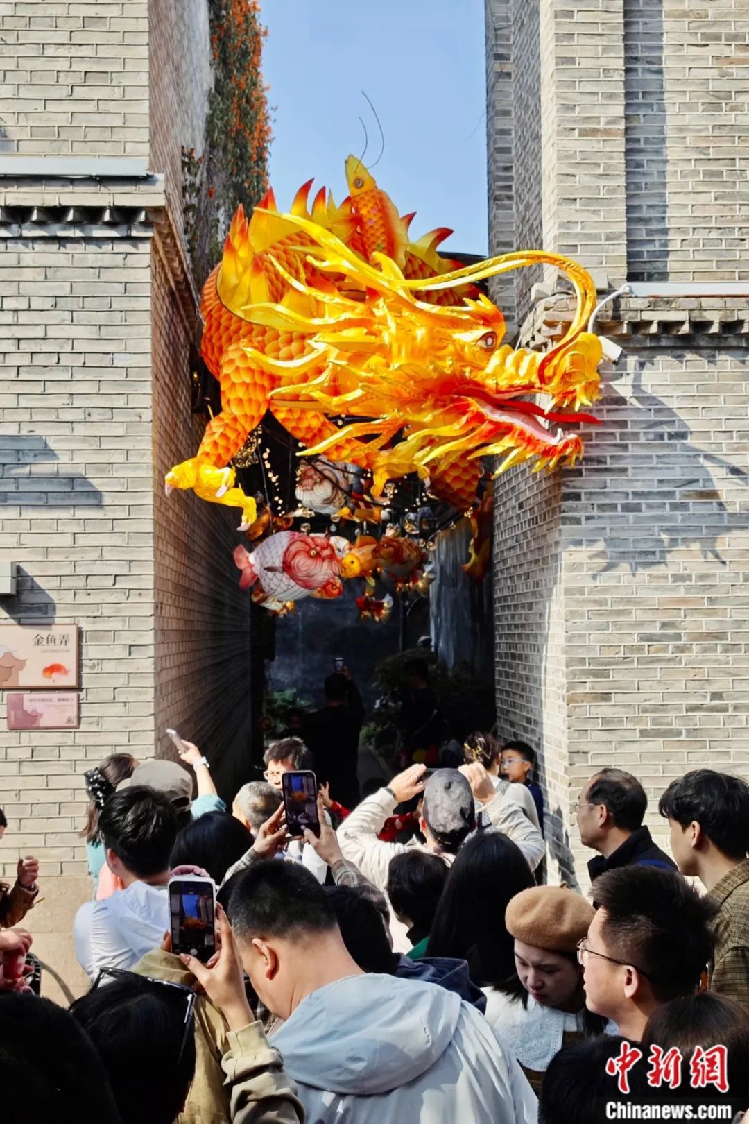 福州三坊七巷古街區(qū)游人如織,龍形燈飾點亮新春氛圍。中新社記者 王東明 攝