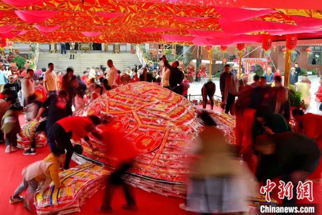 連城林坊游龍,村民們抬著色彩繽紛的大龍環(huán)著村道游走鬧新春。游大龍活動是林坊林氏家族傳統(tǒng)文化藝術(shù)活動的遺產(chǎn),有500多年歷史,意在祈求風(fēng)調(diào)雨順、國泰民安。中新社記者 王東明 攝