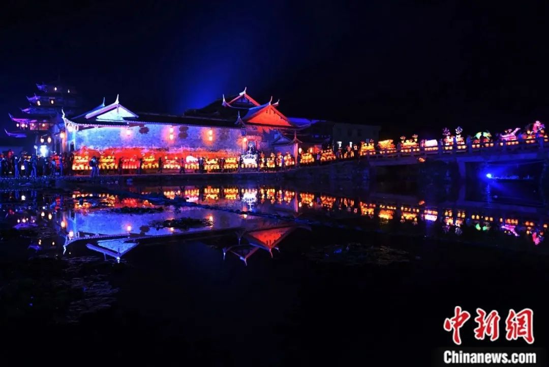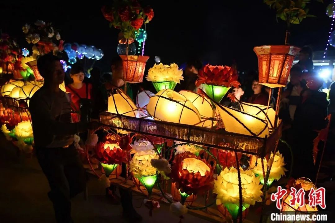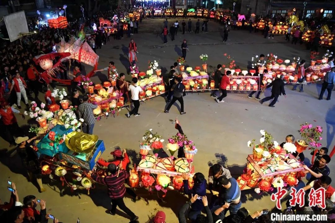 “客家祖地”福建省連城縣芷溪村舉行游花燈活動,吸引民眾體驗民俗文化。圖為游花燈現(xiàn)場。中新社記者 張斌 攝