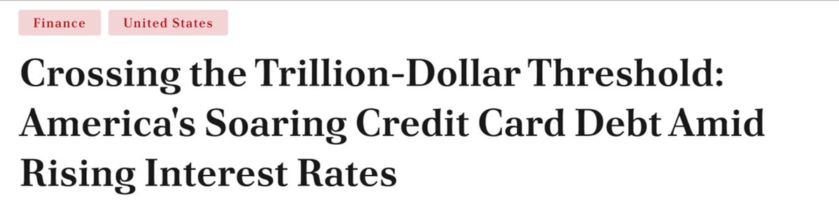 另據(jù)美國媒體BNN Breaking網(wǎng)站報道,美國人的信用卡債務總額累計超過了1萬億美元,創(chuàng)歷史新高。美聯(lián)儲激進的加息措施推動信用卡平均利率大幅增加至22%以上,零售信用卡利息率更是接近驚人的29%。