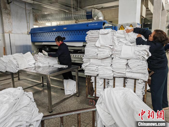 張海榮說,洗滌工們的“神速手”是在每天無數(shù)次的實際操作中練成的,一條烘干后的床單按照折疊3次計算,一個工班8小時折疊2000條,那么在洗滌工手中每天最少要重復(fù)折疊5000次以上,“每天重復(fù)上千遍,沒有手速和一把子力氣還真不行”。