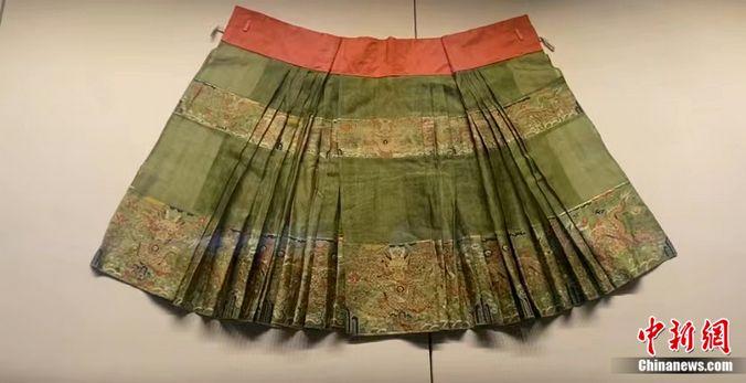 孔子博物館展出的蔥綠地織金妝花紗蟒裙。李明芮 攝