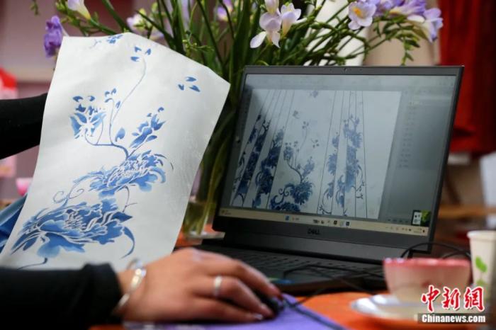 圖片曹縣漢服原創(chuàng)設(shè)計師設(shè)計馬面裙。梁犇 攝