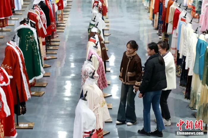 如今,隨著“新中式穿搭”走紅,漢服穿搭、馬面裙穿搭逐漸融入日常生活中。因為價格低、款式多,曹縣漢服成為許多年輕人的選擇,被稱為“年輕人的第一件漢服”,山東也一躍成為“淘寶漢服爆款來源第一大省”。