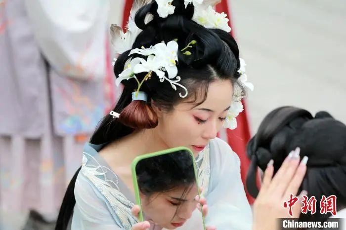 民眾著華服整理發(fā)飾。梁犇 攝