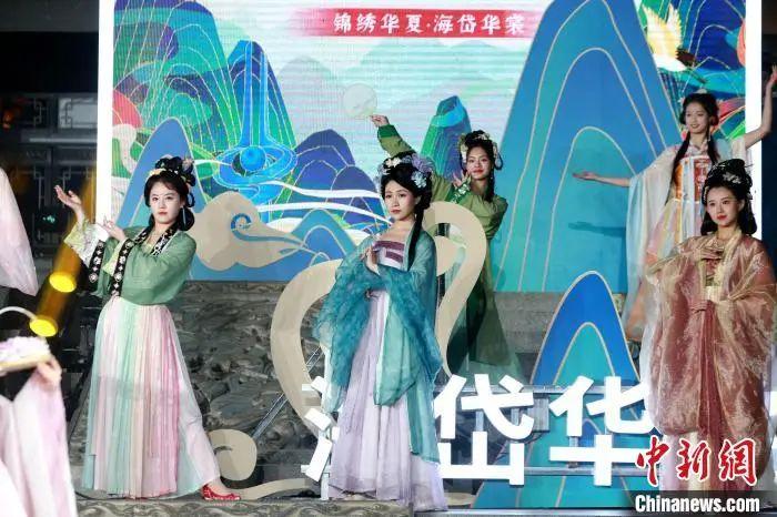 第五屆“中國華服日”山東分會場“錦繡華夏·海岱華裳”在大明湖超然樓舉辦。圖為華服走秀。梁犇 攝