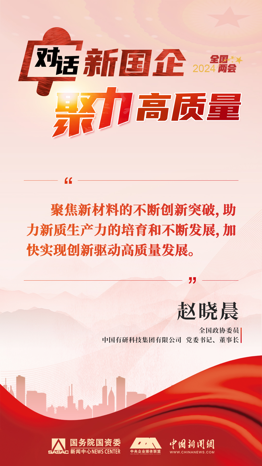 中新網(wǎng)北京3月6日電(記者 張尼) “我理解,科技創(chuàng)新是發(fā)展新質(zhì)生產(chǎn)力的核心要素;新材料突破是戰(zhàn)新產(chǎn)業(yè)、未來產(chǎn)業(yè),是新質(zhì)生產(chǎn)力孕育和發(fā)展的一個(gè)重要前提和基礎(chǔ)。” 全國政協(xié)委員,中國有研科技集團(tuán)有限公司黨委書記、董事長趙曉晨在“對(duì)話新國企·聚力高質(zhì)量”系列融媒體訪談中表示,要以新興產(chǎn)業(yè)發(fā)展引領(lǐng)新質(zhì)生產(chǎn)力形成,培育企業(yè)發(fā)展新動(dòng)能。