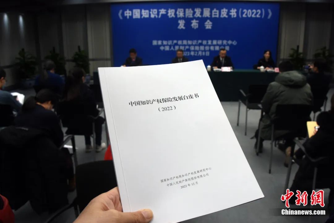2023年2月8日,中國(guó)國(guó)家知識(shí)產(chǎn)權(quán)局知識(shí)產(chǎn)權(quán)發(fā)展研究中心、中國(guó)人民財(cái)產(chǎn)保險(xiǎn)股份有限公司在北京正式發(fā)布雙方合作完成的業(yè)內(nèi)首份《中國(guó)知識(shí)產(chǎn)權(quán)保險(xiǎn)發(fā)展白皮書(2022)》。孫自法 攝