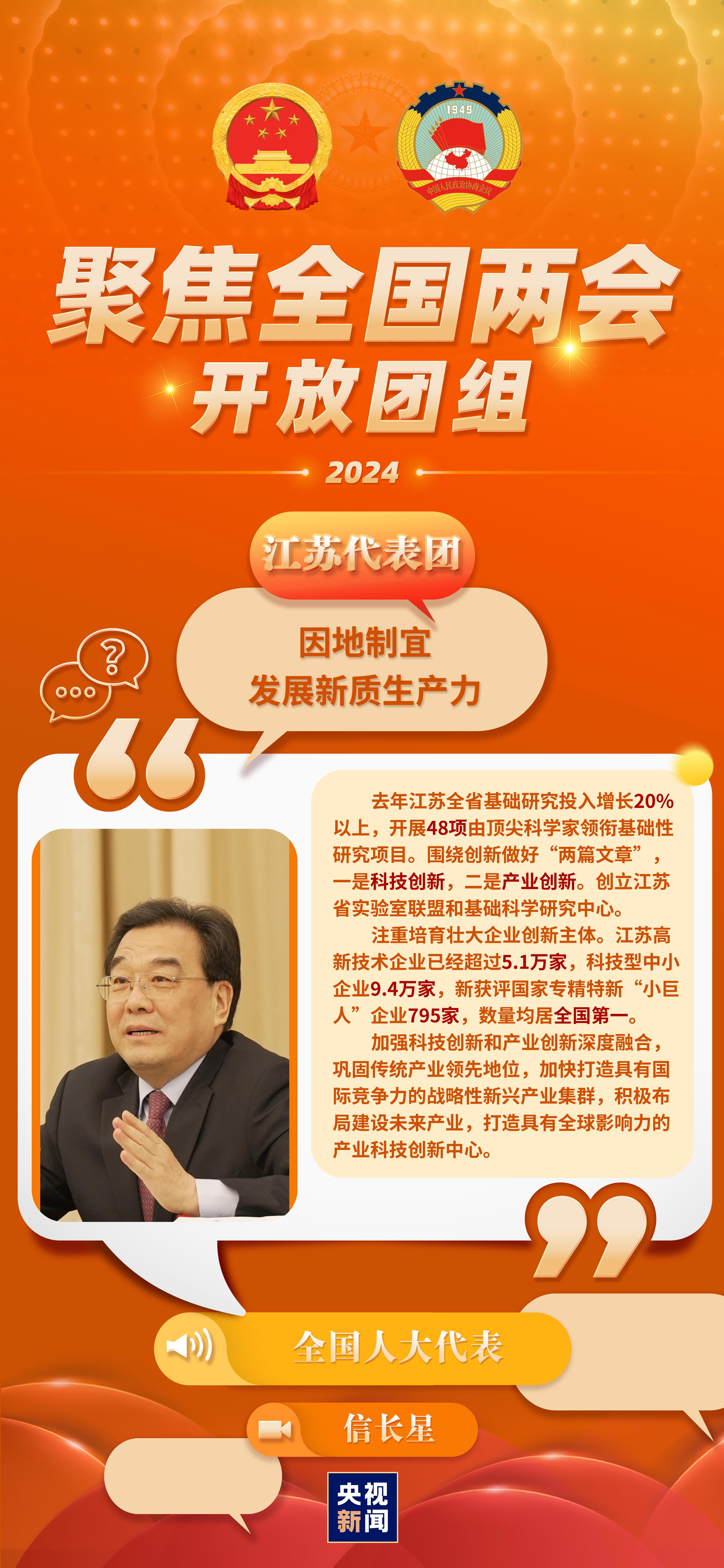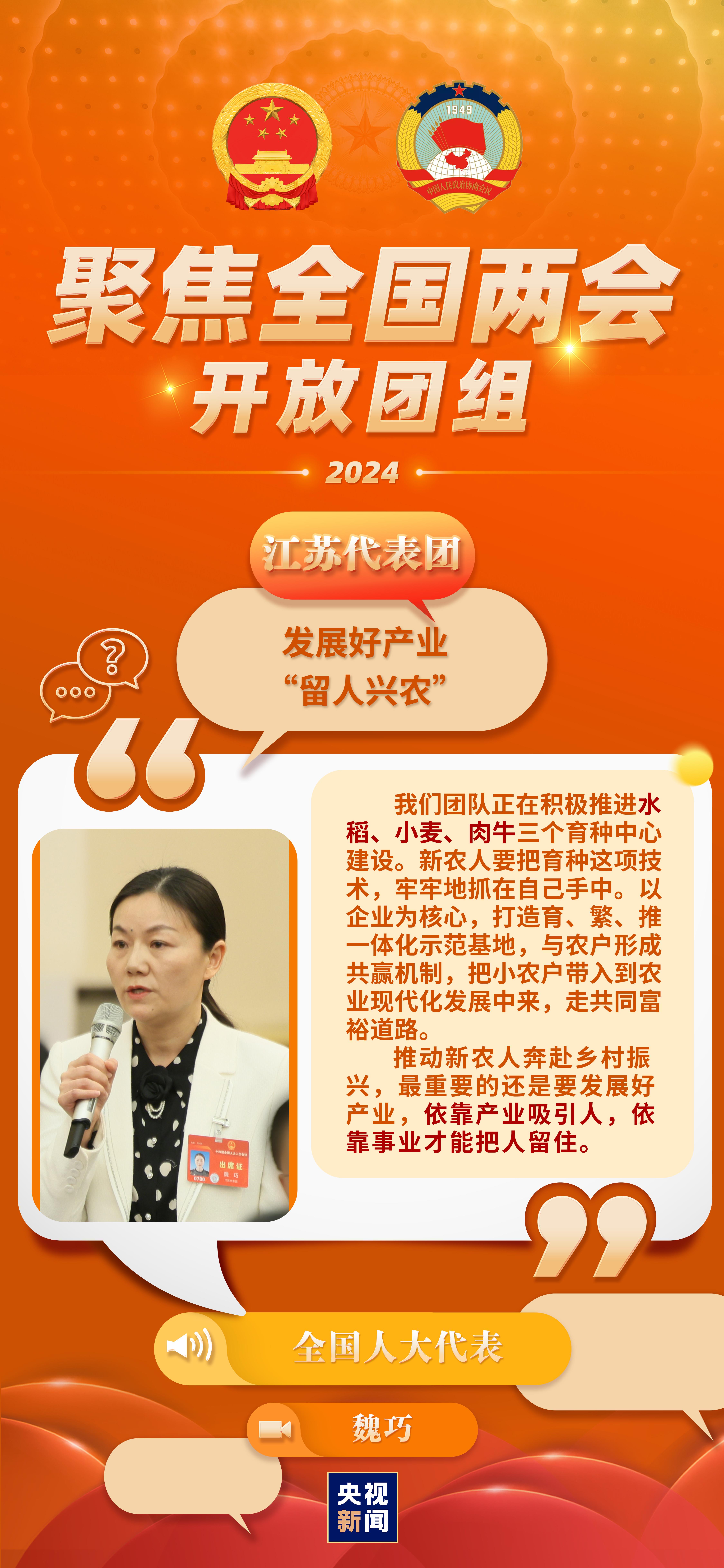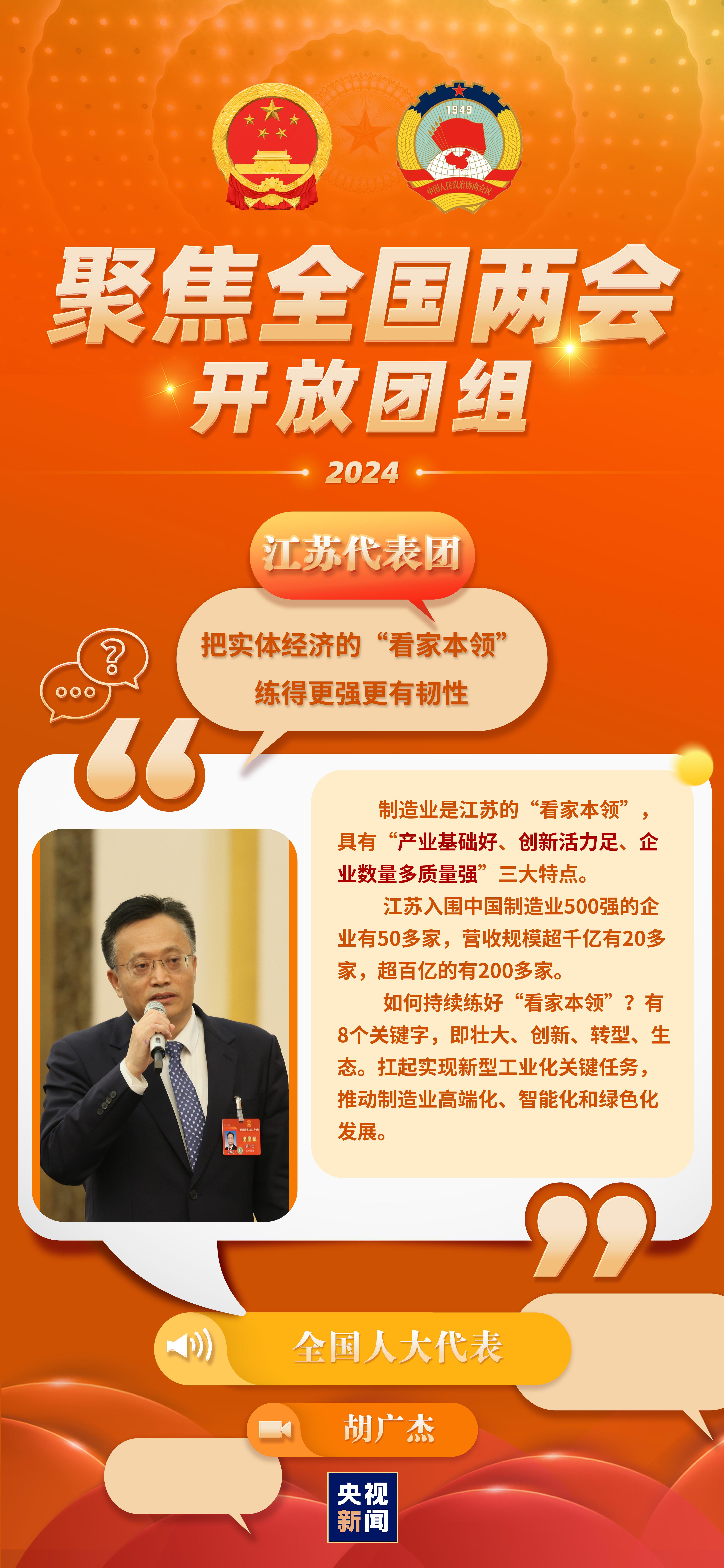 今天(3月7日)上午,出席第十四屆全國人大二次會(huì)議的江蘇代表團(tuán)舉行開放團(tuán)組活動(dòng)。就媒體關(guān)心的發(fā)展新質(zhì)生產(chǎn)力、推進(jìn)新型工業(yè)化、農(nóng)業(yè)現(xiàn)代化、優(yōu)秀傳統(tǒng)文化傳承等相關(guān)問題,代表們?cè)诂F(xiàn)場(chǎng)回答記者提問。