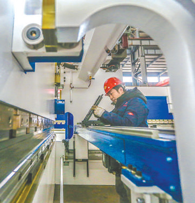 安徽馬鞍山市博望區(qū)亞威機(jī)床制造有限公司技術(shù)人員趕制出口國(guó)外的智能數(shù)控機(jī)床。