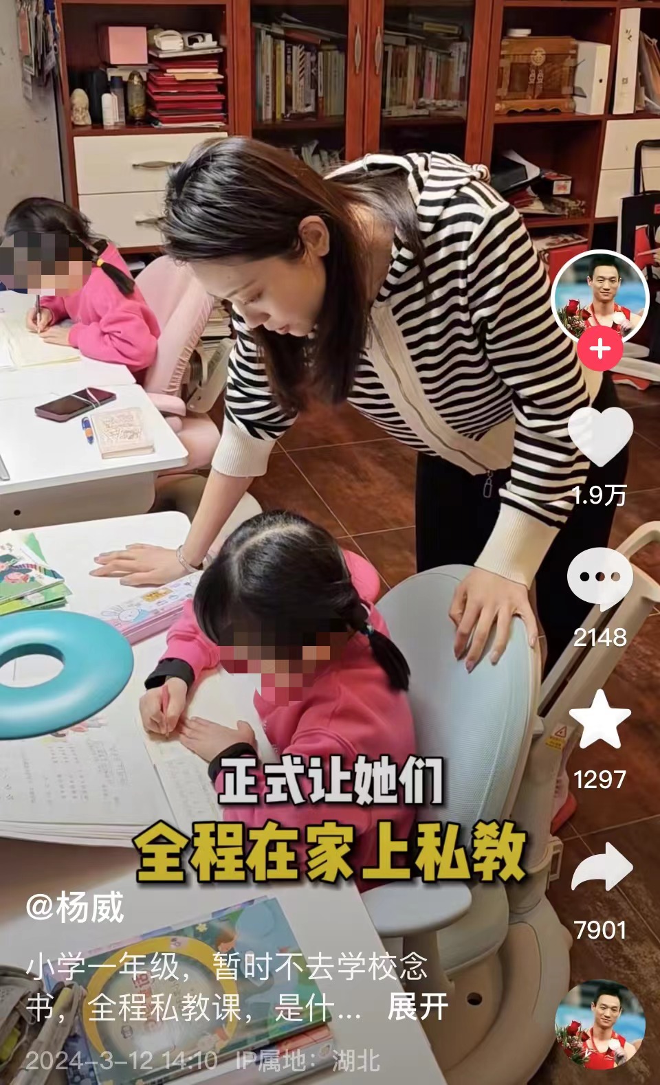 近日,體操奧運(yùn)冠軍楊威在社交平臺(tái)發(fā)布視頻稱,由于去年兩個(gè)女兒連生好幾場(chǎng)病后,他跟妻子楊云做了個(gè)大膽嘗試,讓上一年級(jí)的兩個(gè)女兒暫時(shí)不去學(xué)校念書,全程在家上私教。