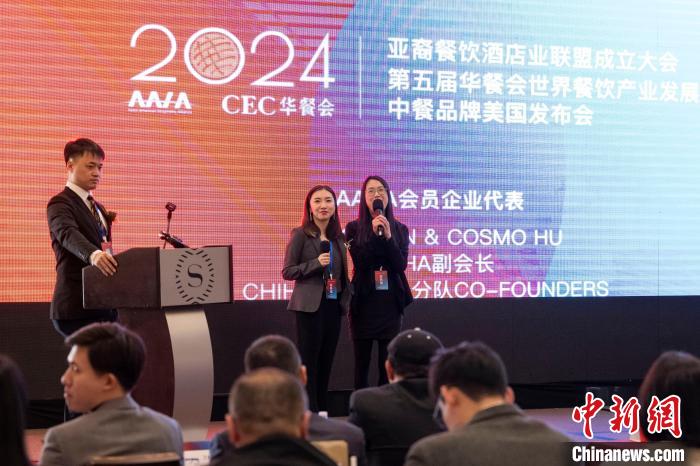 當天,與亞裔餐飲酒店業(yè)聯(lián)盟成立大會同期舉行的還有第五屆華餐會世界餐飲產(chǎn)業(yè)發(fā)展大會暨中餐品牌美國發(fā)布會。活動現(xiàn)場,來自中美兩國逾400位餐飲界人士匯聚一堂,多名企業(yè)代表上臺分享經(jīng)驗,探討中餐品牌出海前景及本地亞裔餐飲行業(yè)未來發(fā)展。
