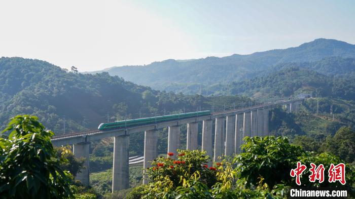 3月17日,一列動車組列車行駛在中老鐵路上?!敲?攝
