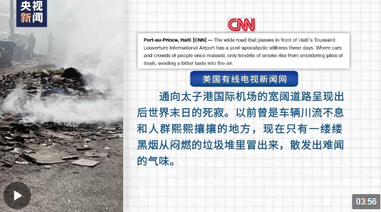 “通向太子港國際機(jī)場的寬闊道路呈現(xiàn)出后世界末日的死寂。以前曾是車輛川流不息和人群熙熙攘攘的地方,現(xiàn)在只有一縷縷黑煙從悶燃的垃圾堆里冒出來,散發(fā)出難聞的氣味?!泵绹芯€電視新聞網(wǎng)(CNN)網(wǎng)站18日報(bào)道了當(dāng)前海地的混亂局勢。