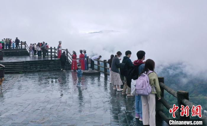 圖為游客在龍脊梯田景區(qū)觀光游覽。潘志祥攝