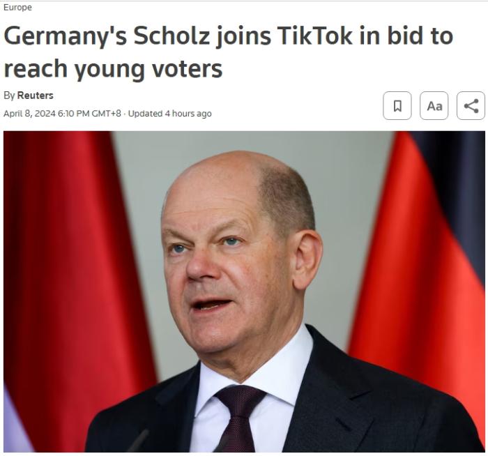 報道稱,朔爾茨加入TikTok是為吸引年輕選民。兩個月前,美國總統(tǒng)拜登也正式加入了TikTok。