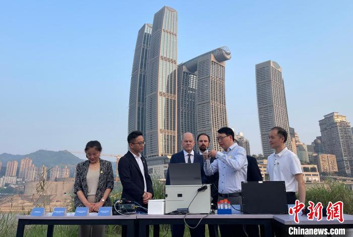 2019年,重慶大學(xué)智能生化傳感與精密儀器團(tuán)隊(duì)和德國(guó)庫(kù)特-施瓦伯測(cè)量與傳感器科技研究所,共同開(kāi)展生態(tài)環(huán)境保護(hù)領(lǐng)域的水環(huán)境污染物高效檢測(cè)技術(shù)與裝備的研究開(kāi)發(fā)。在長(zhǎng)江和嘉陵江交匯處的江岸邊,該項(xiàng)目的重慶大學(xué)研究團(tuán)隊(duì)向朔爾茨介紹檢測(cè)儀器如何進(jìn)行水質(zhì)檢測(cè)與分析。朔爾茨將檢測(cè)樣品注入檢測(cè)儀后,查看了檢測(cè)結(jié)果。