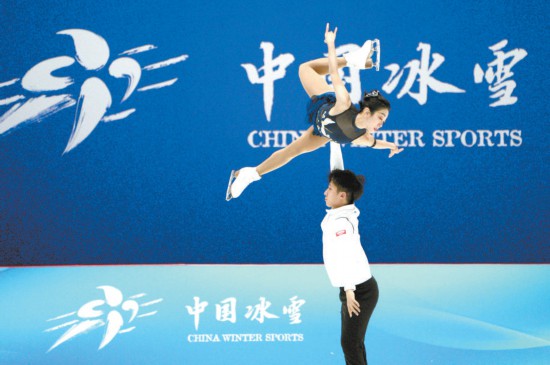 中國花樣滑冰運(yùn)動(dòng)員隋文靜和韓聰在訓(xùn)練中。本報(bào)記者 劉平攝