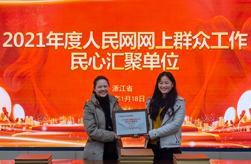 浙江省“2021年度人民網(wǎng)網(wǎng)上群眾工作民心匯聚單位”出爐