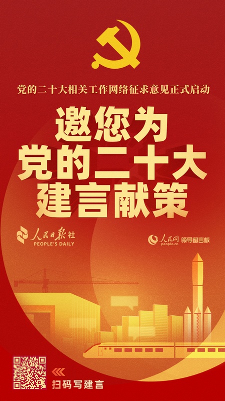 黨的十九屆六中全會決定,黨的二十大于2022年下半年在北京召開。開展黨的二十大相關(guān)工作網(wǎng)絡(luò)征求意見,充分彰顯了以習(xí)近平同志為核心的黨中央發(fā)揚民主、集思廣益的優(yōu)良作風(fēng),是我們黨堅持以人民為中心、尊重人民主體地位、走好群眾路線的重要體現(xiàn),是發(fā)揮中國特色社會主義制度優(yōu)勢、推進(jìn)全過程人民民主的生動實踐,是適應(yīng)互聯(lián)網(wǎng)時代新要求、推進(jìn)國家治理體系和治理能力現(xiàn)代化的有益探索。