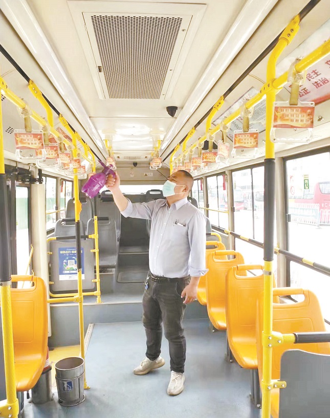 閑不住的柴曉軍總是自己動(dòng)手,對(duì)人群接觸比較密集的扶手、座椅、投票箱、刷卡機(jī)等部位進(jìn)行重點(diǎn)消毒,提前開窗通風(fēng),確保給乘客提供干凈、安全的乘車環(huán)境。作為一名共產(chǎn)黨員,他始終發(fā)揮先鋒模范帶頭作用,積極向乘客普及防疫知識(shí),同時(shí)提供線路咨詢、熱心幫扶等服務(wù),盡最大努力按照規(guī)范謹(jǐn)慎操作,讓乘客放心。