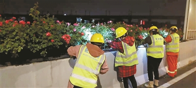 “結(jié)合常規(guī)巡查,新增加負(fù)責(zé)人、管理員、班組三級(jí)巡查模式,通過車巡看整體、人巡觀細(xì)節(jié),檢查市管高架綠化全域路線,分別做到每月、每半月、每?jī)商煲淮稳采w,對(duì)于高架主線和重點(diǎn)匝道做到每天巡查?!焙贾菔谐枪芫质姓行南嚓P(guān)負(fù)責(zé)人介紹,2022年的“高架花廊”巡查主要以綠化長(zhǎng)勢(shì)、灌溉情況、病蟲害、排水設(shè)施滲漏等內(nèi)容為主,對(duì)隱患問題第一時(shí)間發(fā)現(xiàn),第一時(shí)間處理。