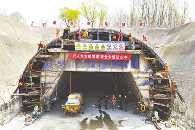 國道G102線市區(qū)段改建工程角山隧道明洞襯砌施工現(xiàn)場,正在緊張施工。 本組照片由河北日報記者孫也達(dá)攝