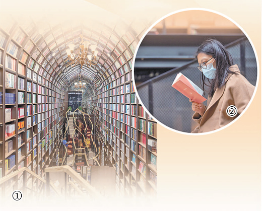 圖②:北京紅樓公共藏書(shū)樓內(nèi),讀者在專心讀書(shū)。