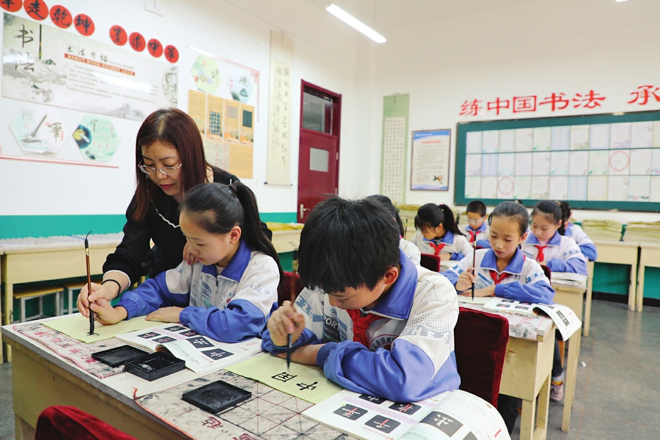 平定縣鎖簧示范小學(xué)堅(jiān)持把“練中國(guó)書(shū)法、承傳統(tǒng)文化”的理念貫穿于教書(shū)育人全過(guò)程,2021年把書(shū)法教育納入課后延時(shí)服務(wù)。張春林?jǐn)z