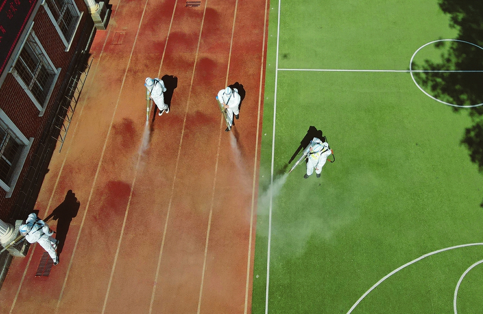 5月6日,為做好校園疫情防控工作,保障師生的身體健康與生命安全,創(chuàng)造良好、健康的生活學習環(huán)境,省城雙南小學邀請藍天救援隊走進學校,對校園進行全面消殺,為學生安全有序返校做好準備。(記者王瑞瑞攝)