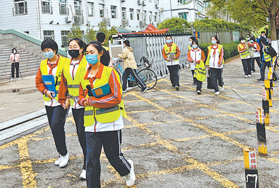 穿著反光背心,排成整齊的隊列,從校門口出來,一抹抹“熒光綠”成為天津市薊州區(qū)惹人關(guān)注的街頭一景。
