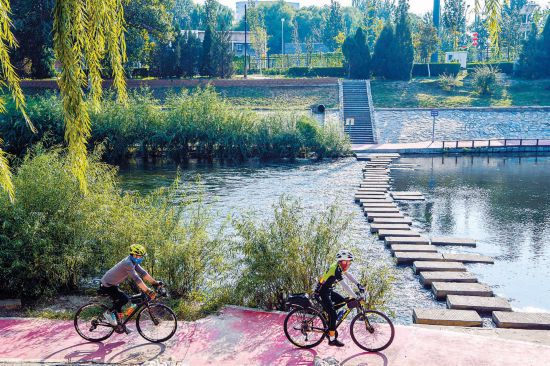 改造后的涼水河豐臺段沿岸綠化與慢行系統(tǒng)融合,為市民休閑騎行增添更多樣的景觀體驗。 本報記者 鄧偉攝