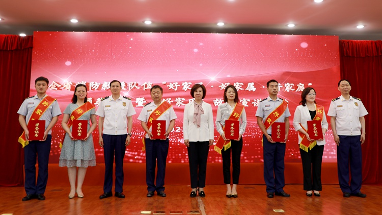 人民網(wǎng)濟(jì)南5月18日電 (顧玉雪)5月18日上午,山東省消防救援總隊(duì)“好家風(fēng)·好家屬·好家庭”頒獎儀式暨“好家風(fēng)”故事宣講活動在濟(jì)南舉行。省婦聯(lián)黨組書記、主席孫豐華,總隊(duì)政治委員肖梟,總隊(duì)長李建春出席活動并為獲獎代表頒獎??傟?duì)機(jī)關(guān)全體指戰(zhàn)員和獲獎、宣講代表在主會場參加活動,各支隊(duì)、大隊(duì)、消防救援站除值班執(zhí)勤外的全體指戰(zhàn)員在各分會場收聽收看。