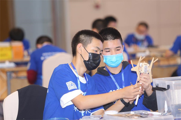 未來太空車復(fù)賽由現(xiàn)場制作和障礙物攀爬兩部分組成,參賽隊伍需在規(guī)定時間內(nèi)完成太空車制作并通過尺寸核驗,最后通過三輪障礙物攀爬比賽決出勝負。比賽中,參賽隊伍以問題為導(dǎo)向,在充分考慮“太空車”爬行動力支撐、速度、阻力、摩擦力等制約因素下,進行裝置的拼裝及改裝,隨著“太空車”一個接一個地翻越過障礙物,現(xiàn)場同學(xué)們紛紛送上喝彩。
