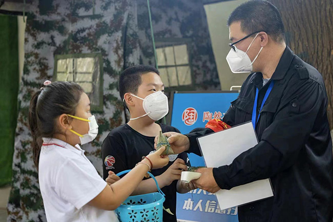 “六德少年”的魅力遠不止這些。在前不久陶然亭街道兒童中心開展的一次云端課堂上,一位百歲“太奶奶”顫抖著手教重孫女包粽子。幾天后,這些粽子便出現(xiàn)在“疫”線工作者的手中?!耙驗楹芏圄兆泳€都纏的不牢固,寶貝送的小心翼翼,后來我們才知道這粽子來之不易。”一位“疫”線工作者接過粽子后,豎起了大拇指。