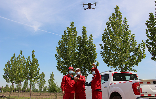 華北油田儲(chǔ)氣庫(kù)員工利用無(wú)人機(jī)巡查管線。 賈艷娜攝