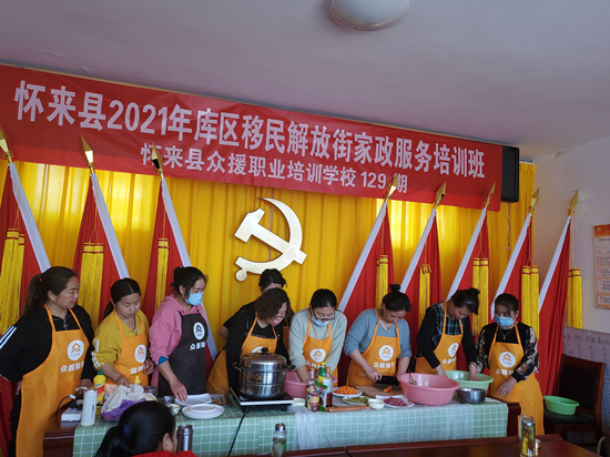懷來縣眾援職業(yè)培訓(xùn)學(xué)校對(duì)新保安鎮(zhèn)解放街村部分婦女進(jìn)行中式面點(diǎn)專業(yè)培訓(xùn)。 懷來縣委組織部供圖