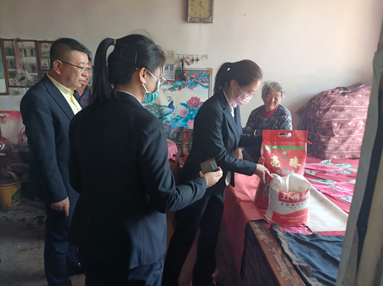 蔚縣國威大藥房開展愛心幫扶活動(dòng),為桃花鎮(zhèn)謝家廟村生活困難老人送去米、面、油等生活用品。 蔚縣縣委組織部供圖