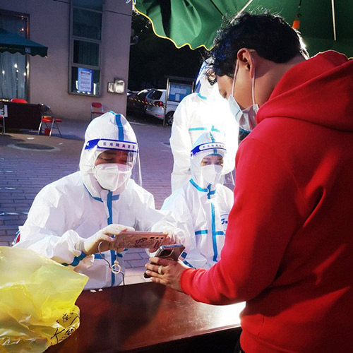 “第一次穿上‘大白服’有點(diǎn)不適應(yīng),從早到晚不停呼喊,白班夜班交替,有時(shí)飯來(lái)不及吃。當(dāng)有人對(duì)我說(shuō)謝謝‘大白’時(shí),我特別開(kāi)心?!奔紟煂W(xué)院志愿者劉許說(shuō)?!拔逡弧奔倨?,北京電控50名下沉干部承擔(dān)所在核酸檢測(cè)點(diǎn)維持秩序、衛(wèi)生消殺、身份證登記等工作。他們說(shuō):“我們度過(guò)了一個(gè)不同尋常的‘五一’,這個(gè)勞動(dòng)節(jié)過(guò)得特別有意義?!?/p>