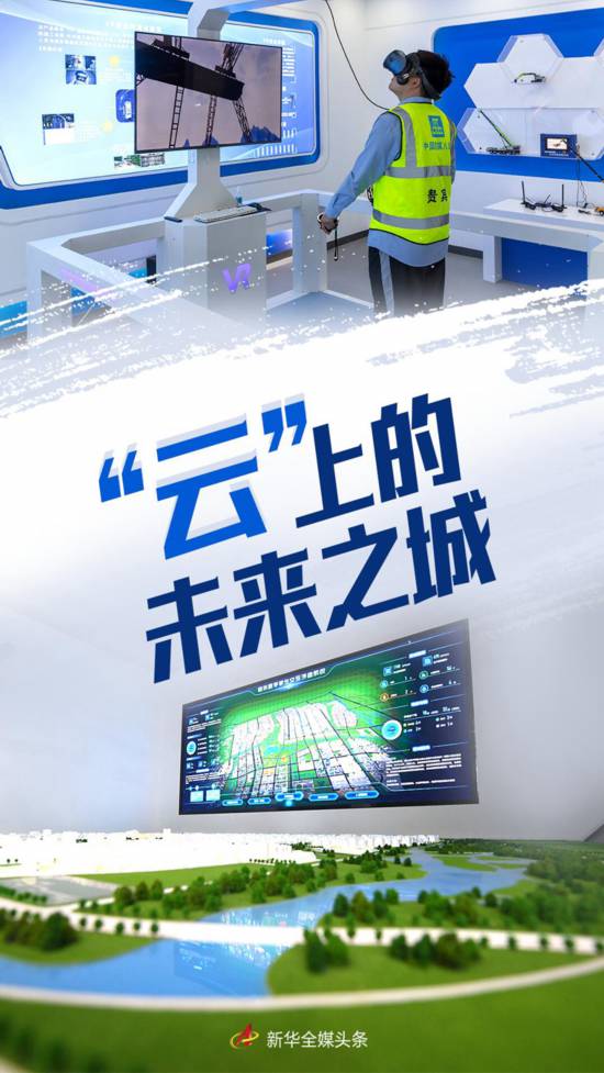 工作人員在雄安新區(qū)一智慧工地展示廳進行工地VR安全體驗(2022年4月13日攝)。新華社發(fā)(高盟 攝)
