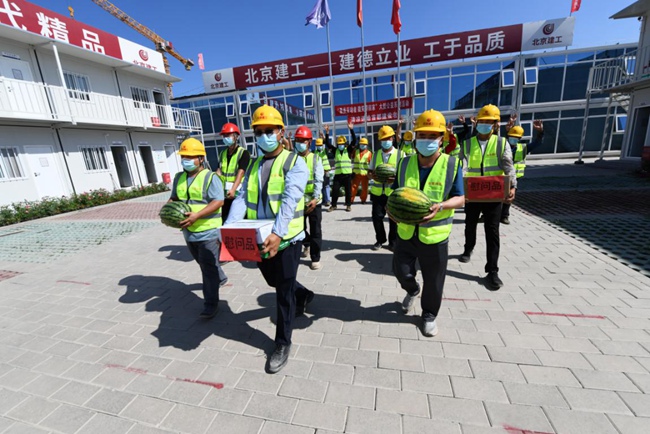 北京市已進入盛夏高溫時節(jié),防暑降溫工作直接關(guān)系到勞動者身體健康和企業(yè)生產(chǎn)安全。7月7日,由北京市總工會主辦的“最美勞動者 微笑帶回家”系列活動暨清涼送給首都建設(shè)者活動,在北京建工路橋集團通州數(shù)據(jù)中心項目舉行,北京建工路橋集團黨委書記王曉輝代表公司黨委、工會對建設(shè)者進行慰問,向奮戰(zhàn)在施工一線建設(shè)者們送去清涼及防疫物資和真摯問候。