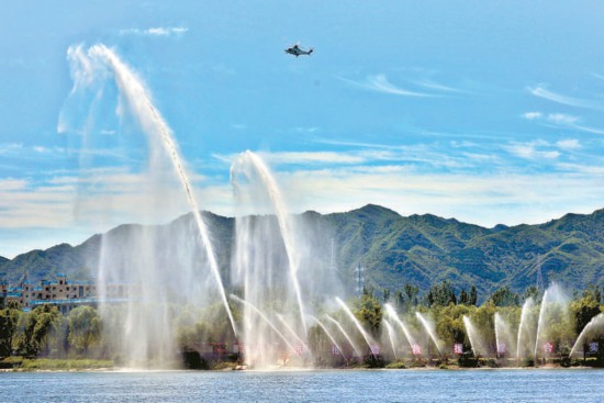 36支水槍同時出水,受災(zāi)區(qū)域的水位快速下降——“城市綜合排澇”展現(xiàn)了消防救援人員聯(lián)動排水集團緊急排險的能力。 本報記者 白繼開攝
