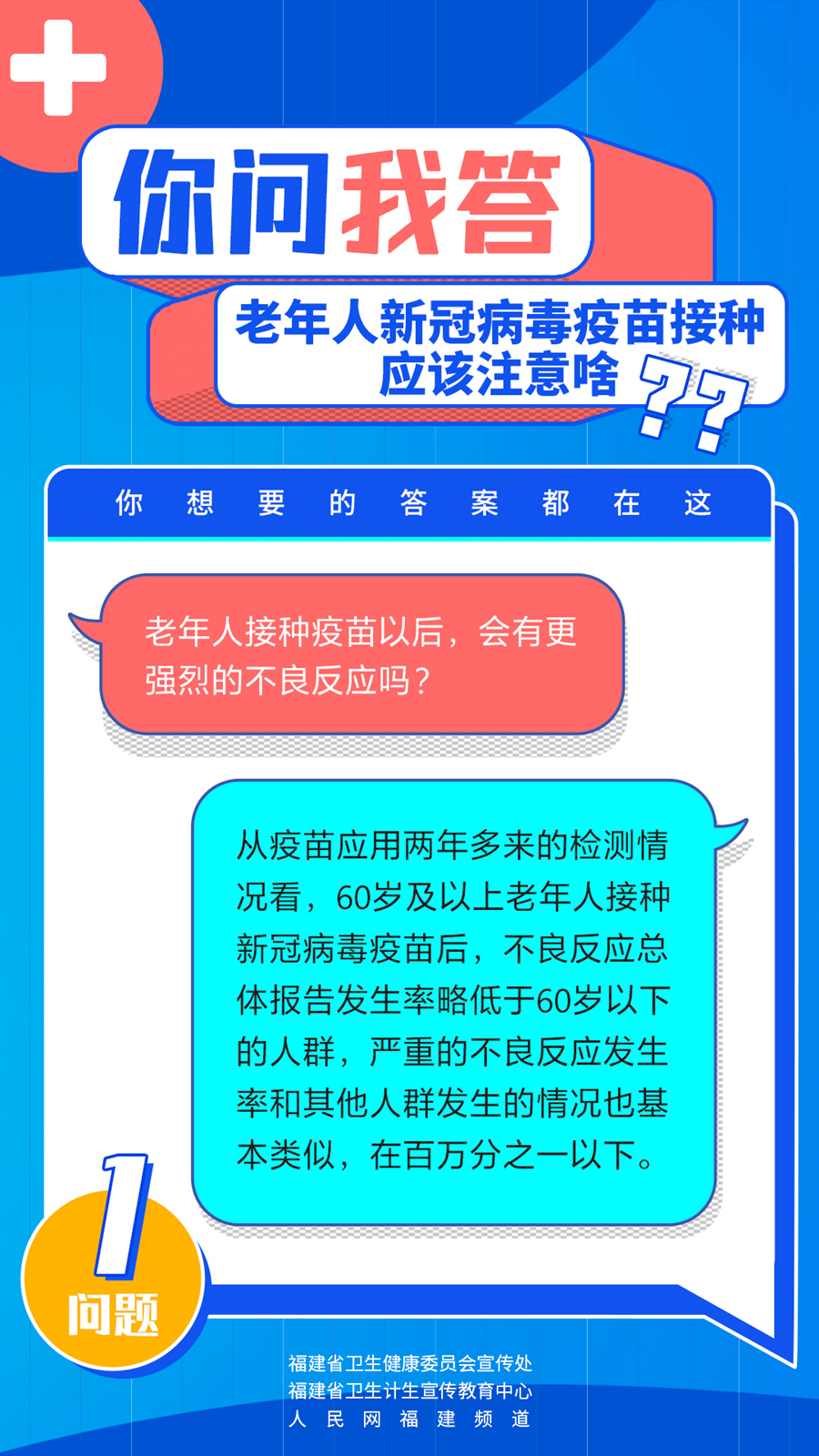 老年人接種疫苗是否安全?會(huì)有更強(qiáng)烈的不良反應(yīng)嗎?哪些老年人群不適合接種新冠病毒疫苗?你問我答,快問快答!老年人新冠病毒疫苗接種究竟應(yīng)該注意啥?