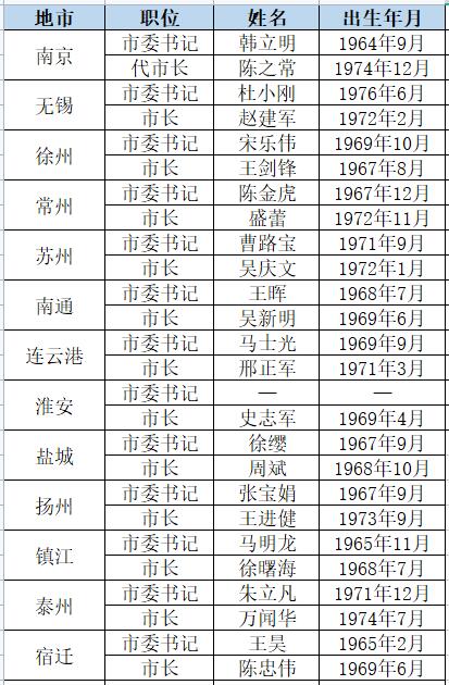 人民網(wǎng)統(tǒng)計(jì)發(fā)現(xiàn),江蘇設(shè)區(qū)市黨政主官中“70后”已達(dá)10位,占比近半。其中,蘇州、無錫、泰州三市的黨政主官均為“70后”。江蘇各市黨政主官里,目前最年輕的是出生于1976年的無錫市委書記杜小剛。