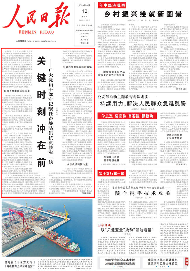人民日報頭版頭條:廣大黨員干部牢記囑托奮戰(zhàn)防汛抗洪救災(zāi)一線